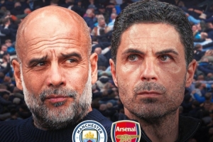 英超官方社媒晒出海报,预热这场重要比赛,两队主帅瓜迪奥拉、阿尔特塔出镜,海报上还有两队的积分排名。