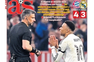 阿斯报封面:皇马带着尊严告别欧冠,裁判决定比赛